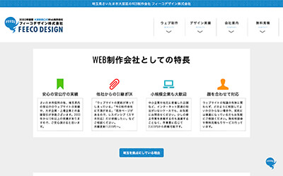 株式会社フィーコデザインは、埼玉県さいたま市大宮区を拠点に、官公庁・上場企業も含む幅広いWeb制作実績を持つ会社です。既存サイトの引き継ぎや小規模企業の更新対応まで柔軟に支援し、「サイト本来の目的を追求する」姿勢で信頼されています。