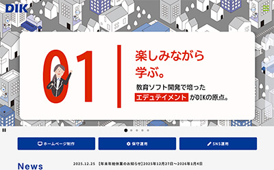 株式会社ディーアイケイは、埼玉県本庄市を拠点に1999年創業のホームページ制作会社です。官公庁・自治体・大学・研究機関など700件以上の実績を持ち、企画から制作・保守・SNS支援までワンストップで提供しています。