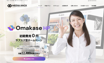 初期費用0円サブスク型ホームページ。インスタグラムの投稿を自動連動。MEO対策のためのサブスクホームページ。月額12,480円(税込)から。MEDIA HACKは飲食店や美容室、ネイルサロンなどあらゆるブランド、業種に対応したホームページ制作を行います。